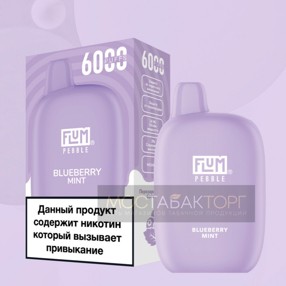 FLUM видыPebble FLUM вкусыЧерника Мята FLUM количество в блоке10 шт